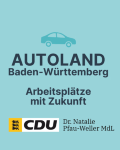 „Die Automobilwirtschaft ist das Rückgrat unserer Region. Wir müssen alles daransetzen, Arbeitsplätze zu sichern und Innovationen zu fördern. Technologieoffenheit ist der Schlüssel dazu“, sagt Dr. Natalie Pfau-Weller. „Unsere mittelständischen Zulieferer brauchen Planungssicherheit und faire Rahmenbedingungen. Nur dann können sie weiter in neue Antriebe investieren und ihren Mitarbeiterinnen und Mitarbeitern eine Perspektive geben. Es darf nicht sein, dass wir in Baden-Württemberg Arbeitsplätze verlieren, während andere Weltregionen die Chancen nutzen“, so Pfau-Weller weiter.