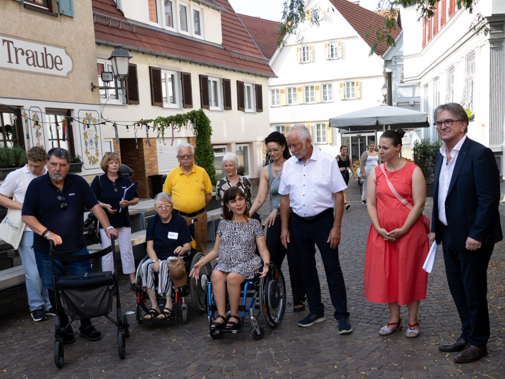 Im Rahmen seiner Sommertour begleitete Sozialminister Manfred Lucha die gemeinsame Begehung mit dem Sozialverband VdK, um sich ein Bild von den Fortschritten und dem weiteren Handlungsbedarf vor Ort zu machen.