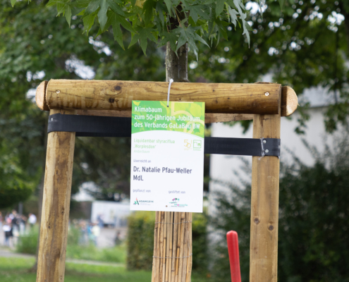 Vergangene Woche pflanzte die CDU-Landtagsabgeordnete Dr. Natalie Pfau-Weller gemeinsam mit Vertreterinnen und Vertretern der Stadt Wernau sowie des Verbands Galabau einen Amberbaum am Rondell vor der Grundschule der Schlossgartenschule Standort Katzenstein. Anlass war das 50-jährige Jubiläum des Verbands, das unter dem Motto „50 Bäume für Baden-Württemberg“ gefeiert wird.