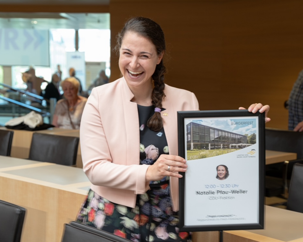 Die CDU-Landtagsabgeordnete Dr. Natalie Pfau-Weller freute sich daher sehr, dass mit dem diesjährigen Bürgerfest wieder die Türen des Landtags für die Öffentlichkeit geöffnet werden konnte.