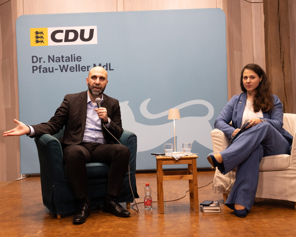 Wie Integration gelingen kann – und wo Deutschland ehrlicher über Herausforderungen sprechen muss – darüber wurde bei einer Veranstaltung mit dem Psychologen und Extremismusforscher Ahmed Mansour in der Zehntscheuer in Köngen diskutiert. Eingeladen hatte die CDU-Landtagsabgeordnete Natalie Pfau-Weller. Im Mittelpunkt stand die Frage, wie Integration besser gelingen kann und welche Versäumnisse der vergangenen Jahre aufgearbeitet werden müssen.
