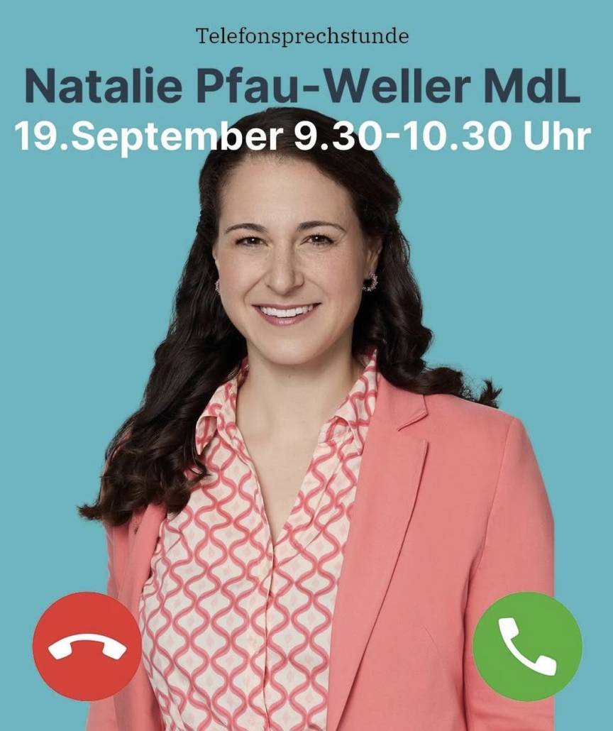 Telefonsprechstunde Wann 19. September 2025 9:30 - 10:30 Zum Kalender hinzufügen ICS herunterladen Google Kalender iCalendar Office 365 Outlook Live Zur Koordinierung der Gesprächstermine ist eine Anmeldung erforderlich: per E-Mail an natalie.pfau-weller@cdu.landtag-bw.de oder telefonisch unter 07021 – 7347907. 19. September 2025 https://www.natalie-pfau.de/wp-content/uploads/2025/09/Telefonsprechstunde-19.09.2025.jpg 1269 1064 Martina Hertle https://www.natalie-pfau.de/wp-content/uploads/2024/01/logo.png Martina Hertle2025-09-16 08:26:532025-09-16 08:26:53Telefonsprechstunde