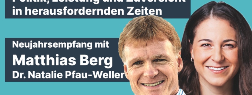 Beim Neujahrsempfang der CDU Wernau möchten wir gemeinsam ins Gespräch kommen: über politische Verantwortung in herausfordernden Zeiten, über Führung und Leistungsbereitschaft – und darüber, was jede und jeder Einzelne zum Zusammenhalt unserer Gesellschaft beitragen kann. Gemeinsam mit Matthias Berg steht dabei nicht der Schlagabtausch im Mittelpunkt, sondern ein offener, ehrlicher Dialog mit Blick nach vorn.